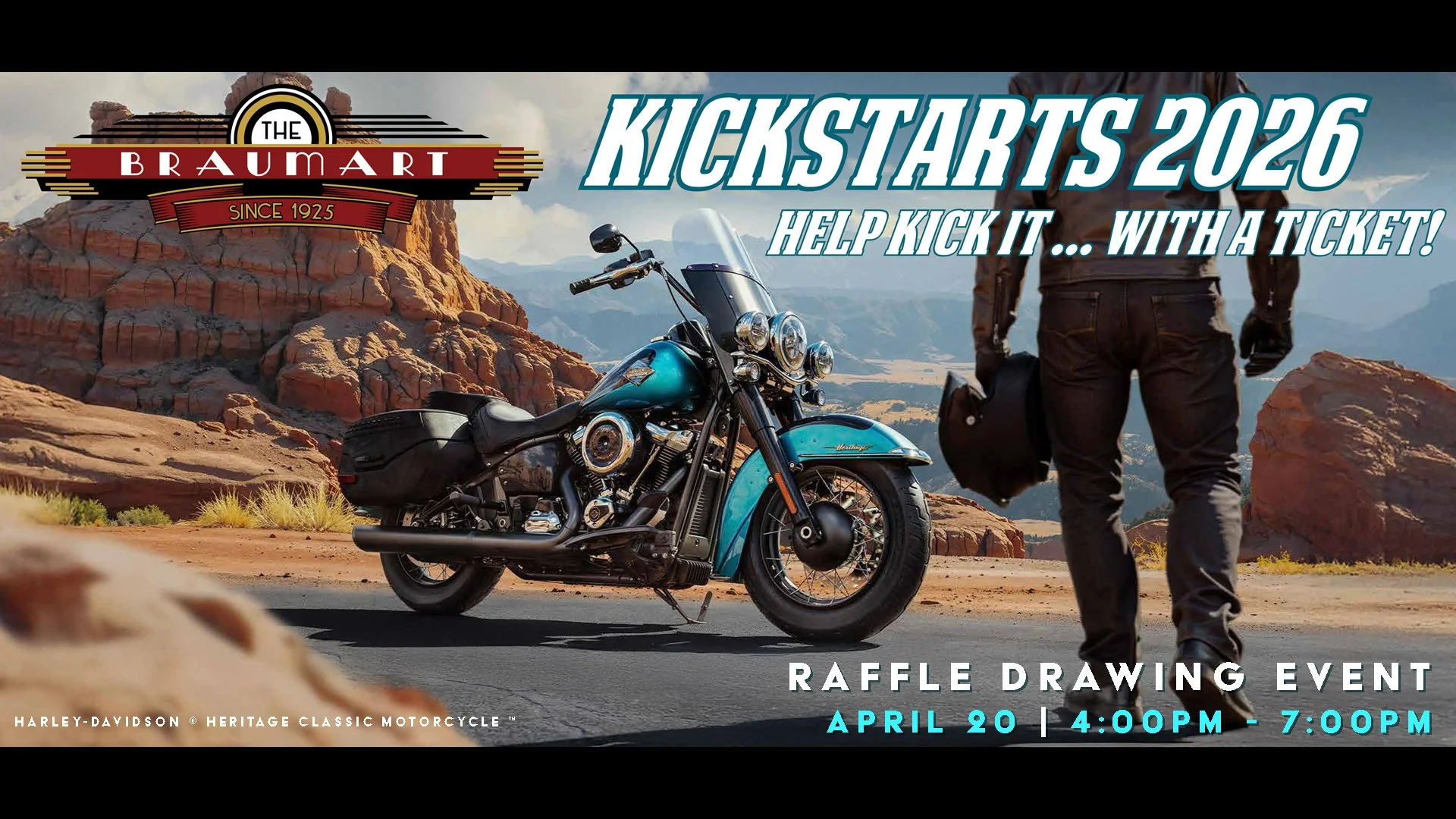 On April 20th, come out to The Braumart as we announce the big winners for our Kickstart the Braumart 2026 raffle. Will YOU be the big winner? You're just one ticket away from a chance to drive off into the summer with at brand new Harley Davidson motorcycle!